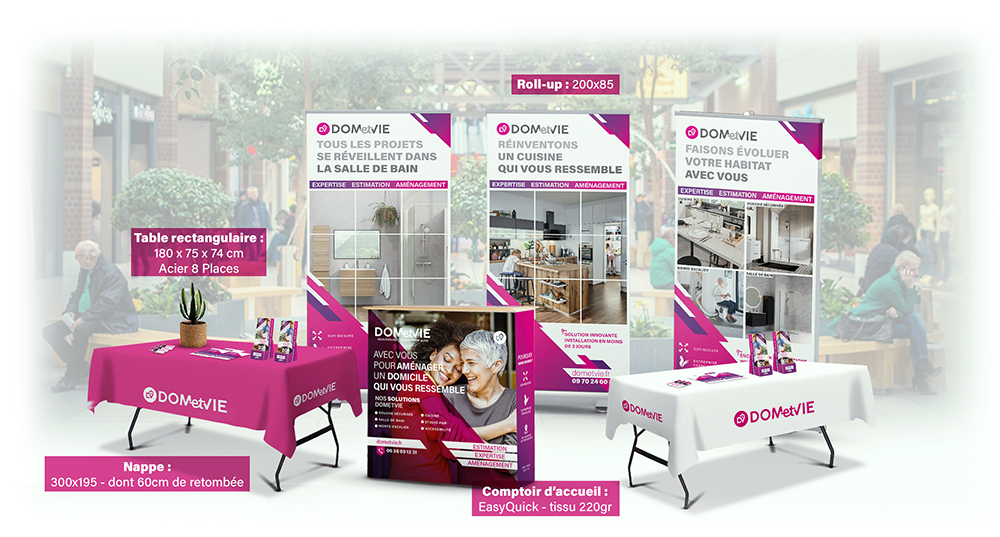 Production de différentes vidéos et de tous les supports de communication et de prospection. Flyer, affiche, brochure, cartes de visite, roll-up, comptoir, stand parapluie, panneaux publicitaires, covering...