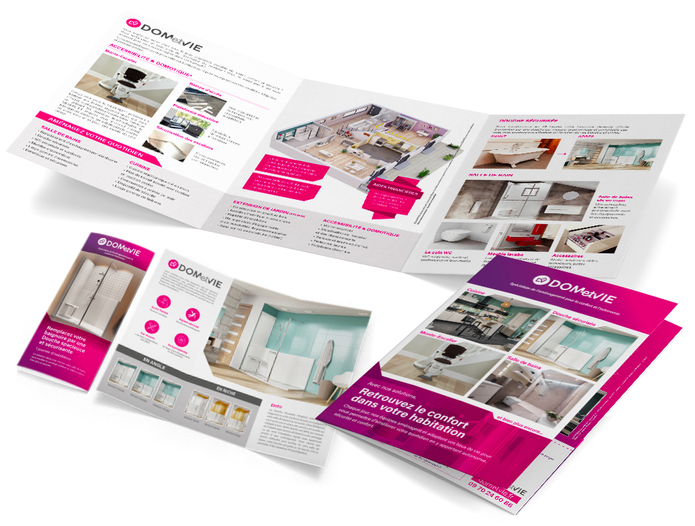Production de différentes vidéos et de tous les supports de communication et de prospection. Flyer, affiche, brochure, cartes de visite, roll-up, comptoir, stand parapluie, panneaux publicitaires, covering...